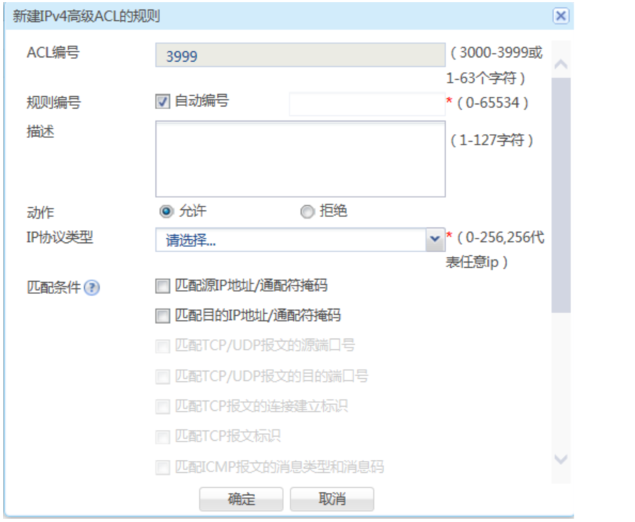 #在“类型”中选择高级ACL,ACL编号输入3999。