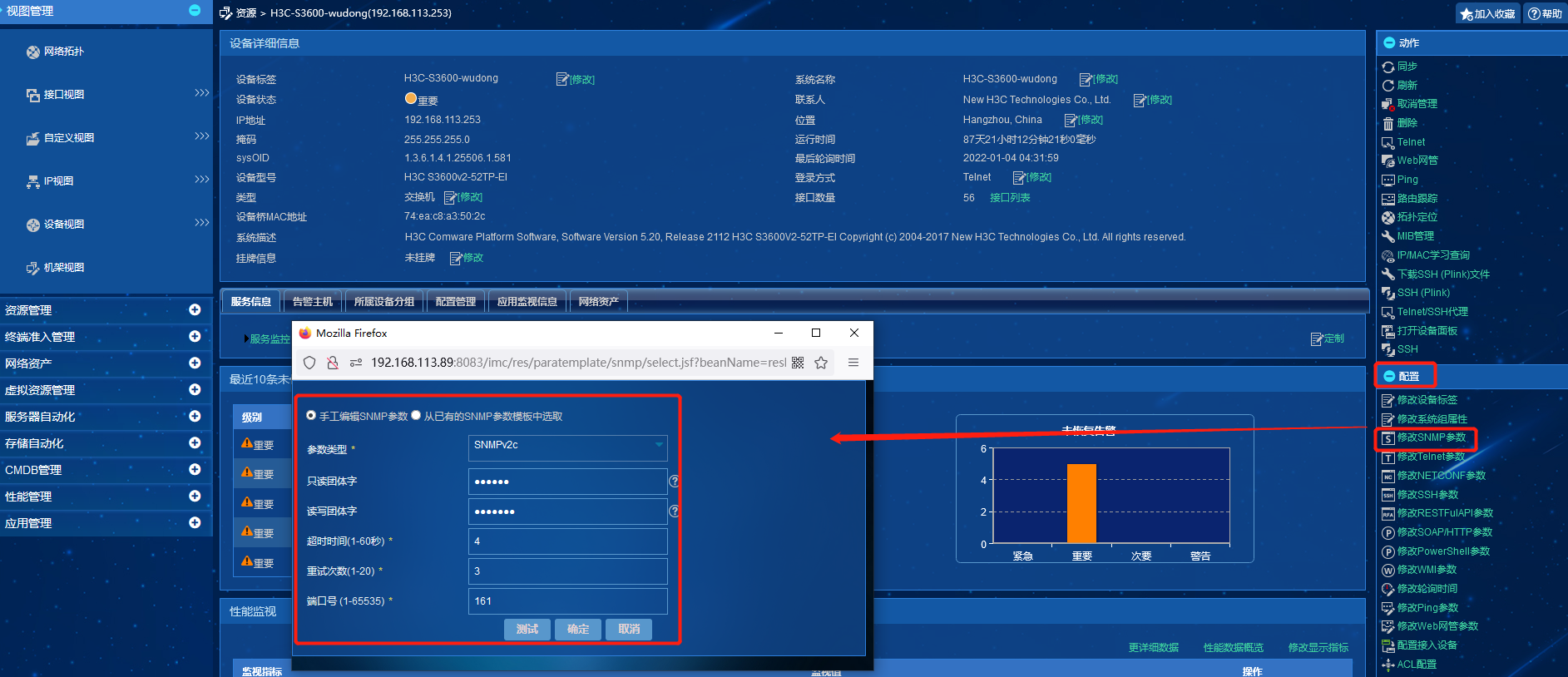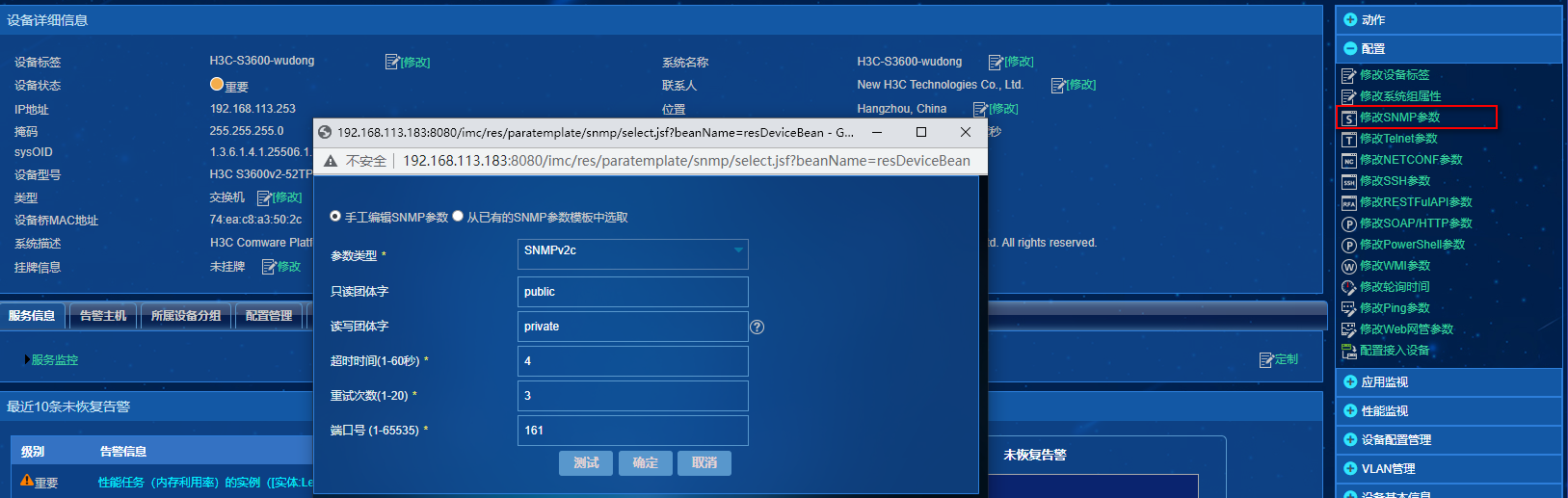 1、修改已经添加至imc上的设备的snmp参数