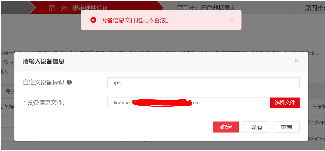 查看授权函和设备是适配的,但是在第二步这里就是报了格式不合法