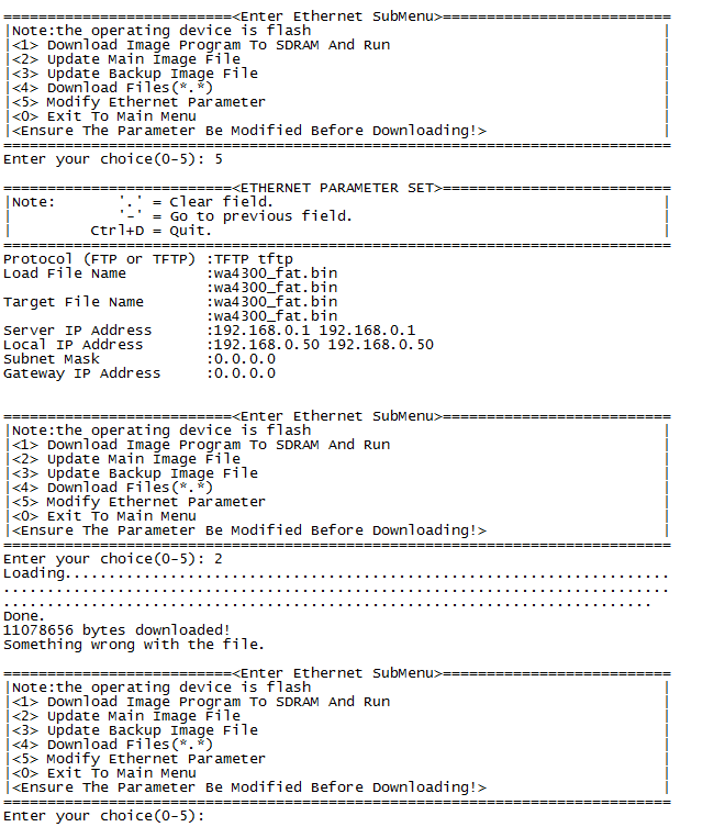Trying to get the IP address from the DHCP server.....循环重启,按照社区https://zhiliao.h3c.com/questions/dispcont/107417 教程方法,重启格式化flash,但是最终刷不到新灌的flash, 全过程如下图,求大神详细指导故障点