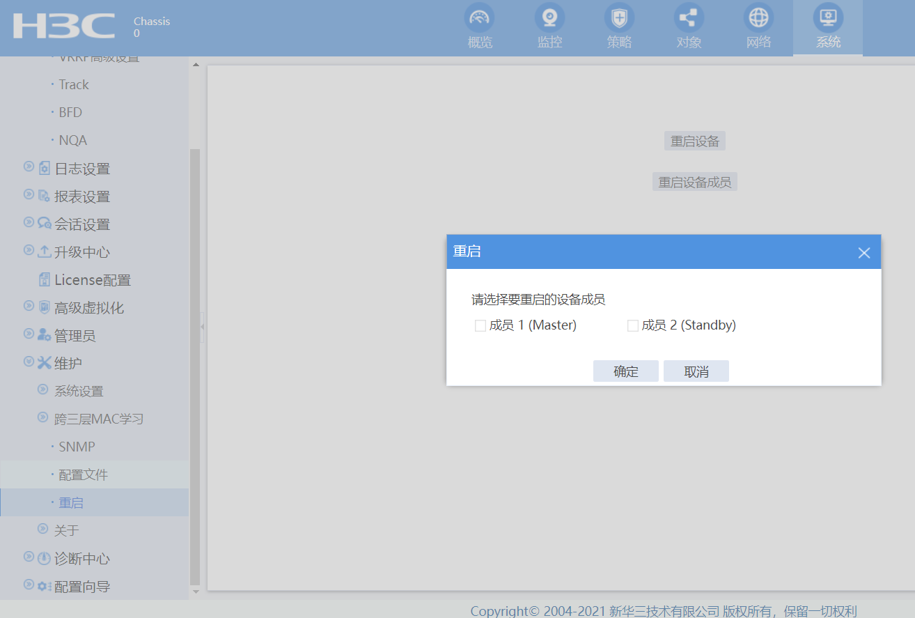 您好,重启设备只是重启当前的主控设备,重启成员设备是重启所有堆叠设备