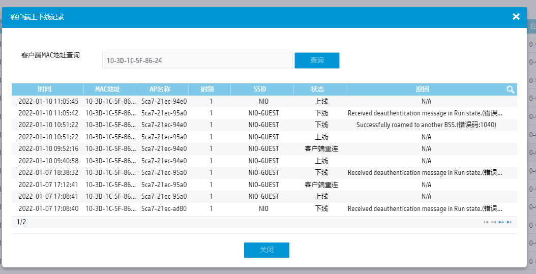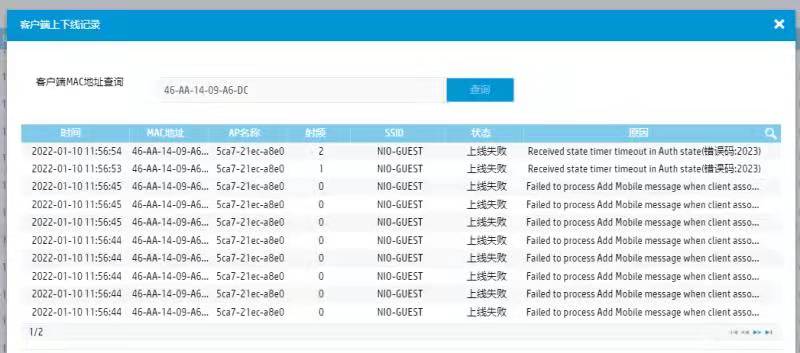 1.所在AP获取到ip地址无法上网,AC上查看客户端显示上线失败错误码2018