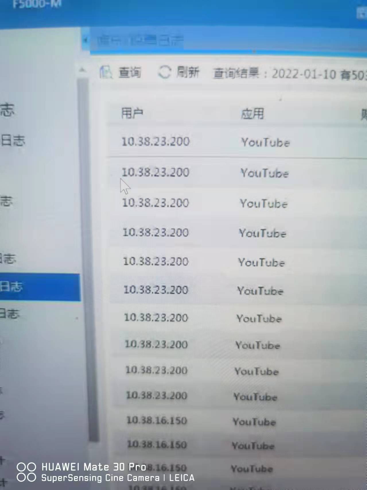 防火墙上网行为管理监控中,是基于什么监控的,我策略里只让10.38.38.0 这个网段能上网和访问,但为什么看上网行为管理日志里,还能看到图片中的IP有访问行为,而且只能看到的是YouTube应用,其他的行为又看不到