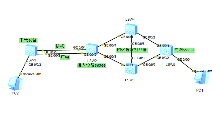中兴是一台设备的两个接口,华三是堆叠后的设备的两个接口