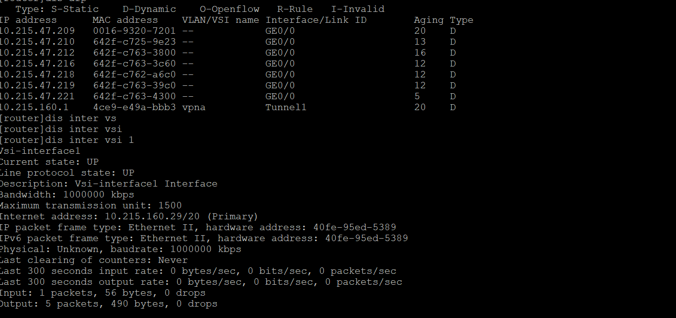 路由器上vxlan隧道通了,配了Vsi-interface,看了一下arp,也学到对端的mac地址,但就是ping不通对端的ip地址。