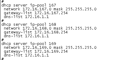新增了3个vlan(及167.168.169三个网段),但是从AC控制上拼172.16.167.254及172.16.168.254、172.16.169.254都不通,但是使用V7版本同样配置就可以互相ping通,想了解一下是什么问题?