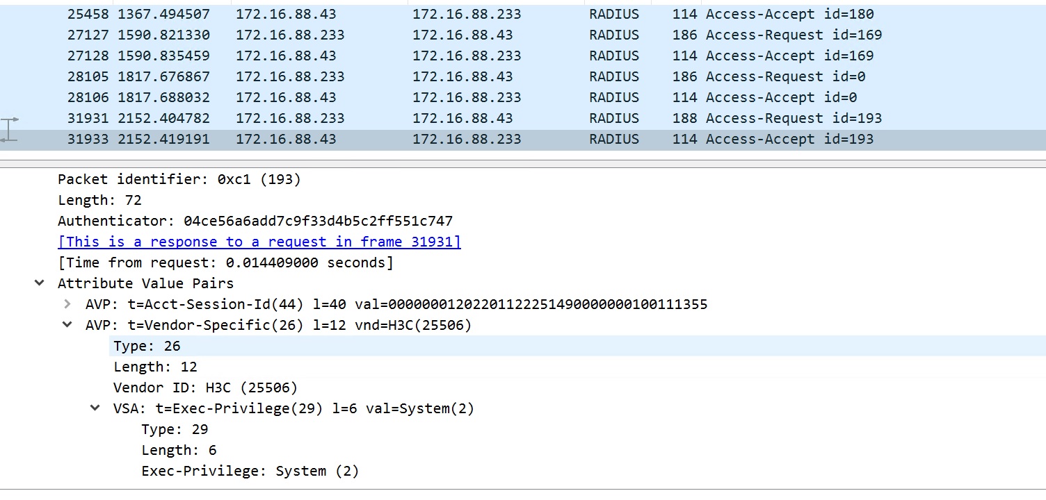 HCL3.0.1模拟器里MSR3620路由器做RADIUS登陆认证失败,不知道是什么原因?
