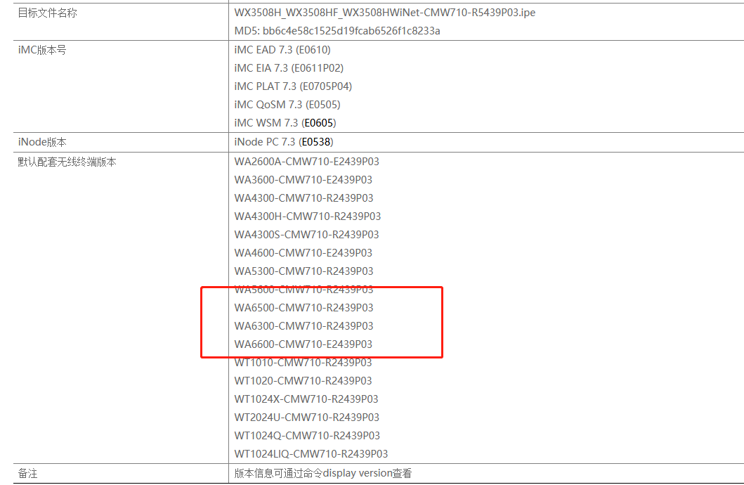 H3C WX3508H H3C Comware Software, Version 7.1.064, Release 5439P03