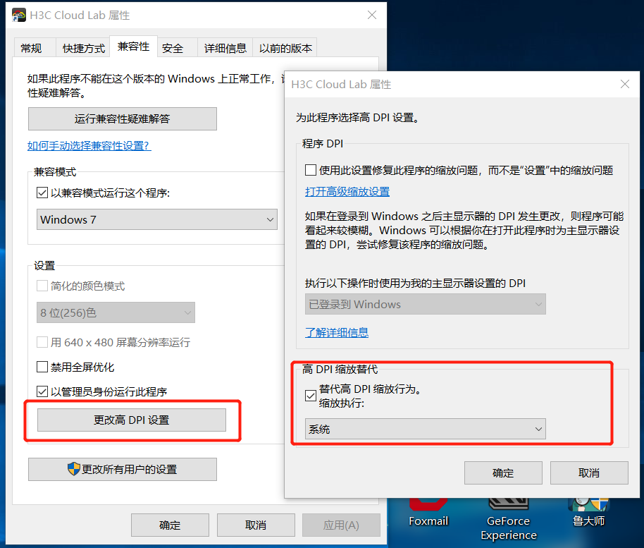右键HCL选择属性,点到兼容性里面,更改高DPI设置->高DPI缩放行为选择为系统(之前是‘应用程序’)就行了