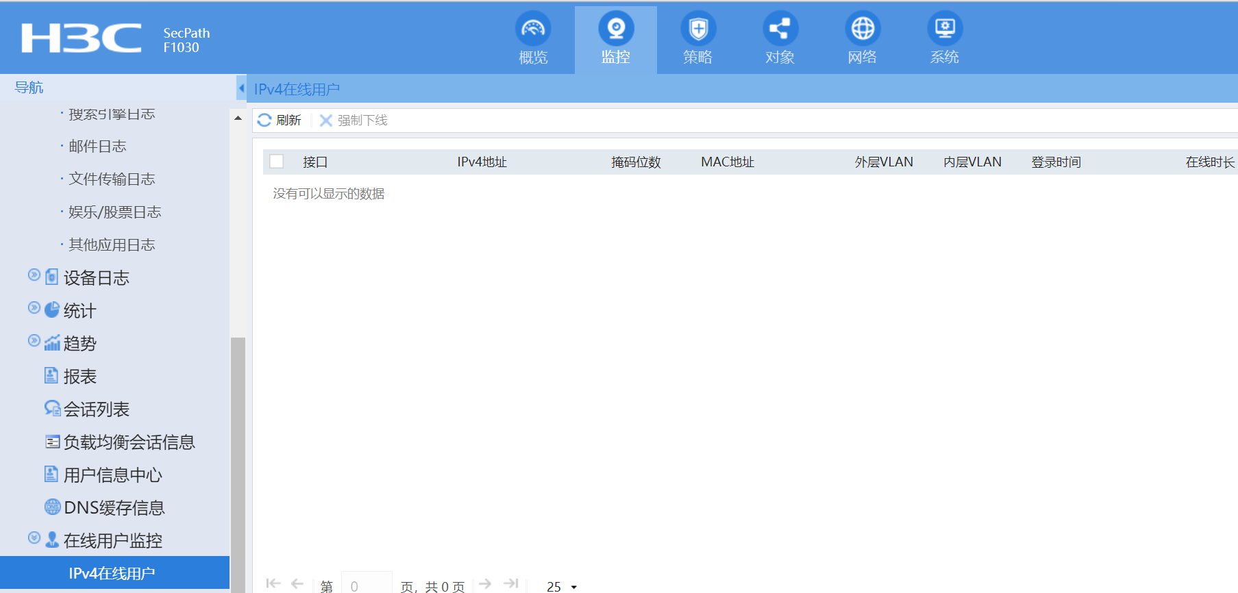 这个是新版本合入的这个功能,监控下的在线用户对应的配置是:网络>安全接入>IP接入,是IPOE的功能