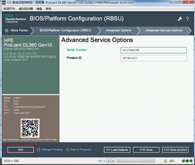 System Configuration > BIOS/Platform Configuration (RBSU) > Advanced Options > Advanced Service Options > Serial Number.