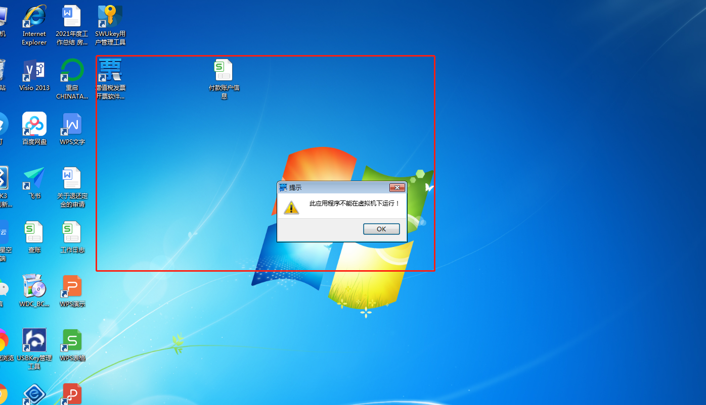 软件应该是检查了当前环境是物理机还是虚拟机,这个还是需要软件厂家解决下,是否无法在虚拟机内运行。