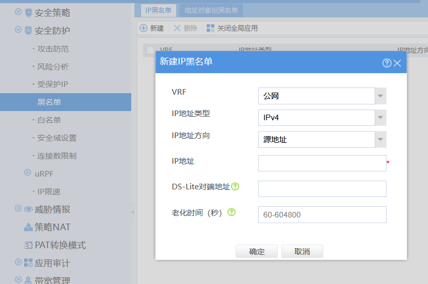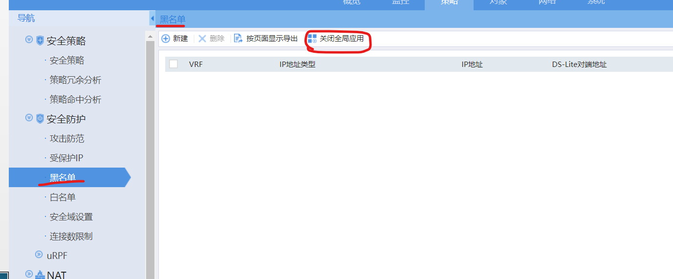 F1000防火墙在安全策略配置入侵防御功能,提示需要开启全局黑名单