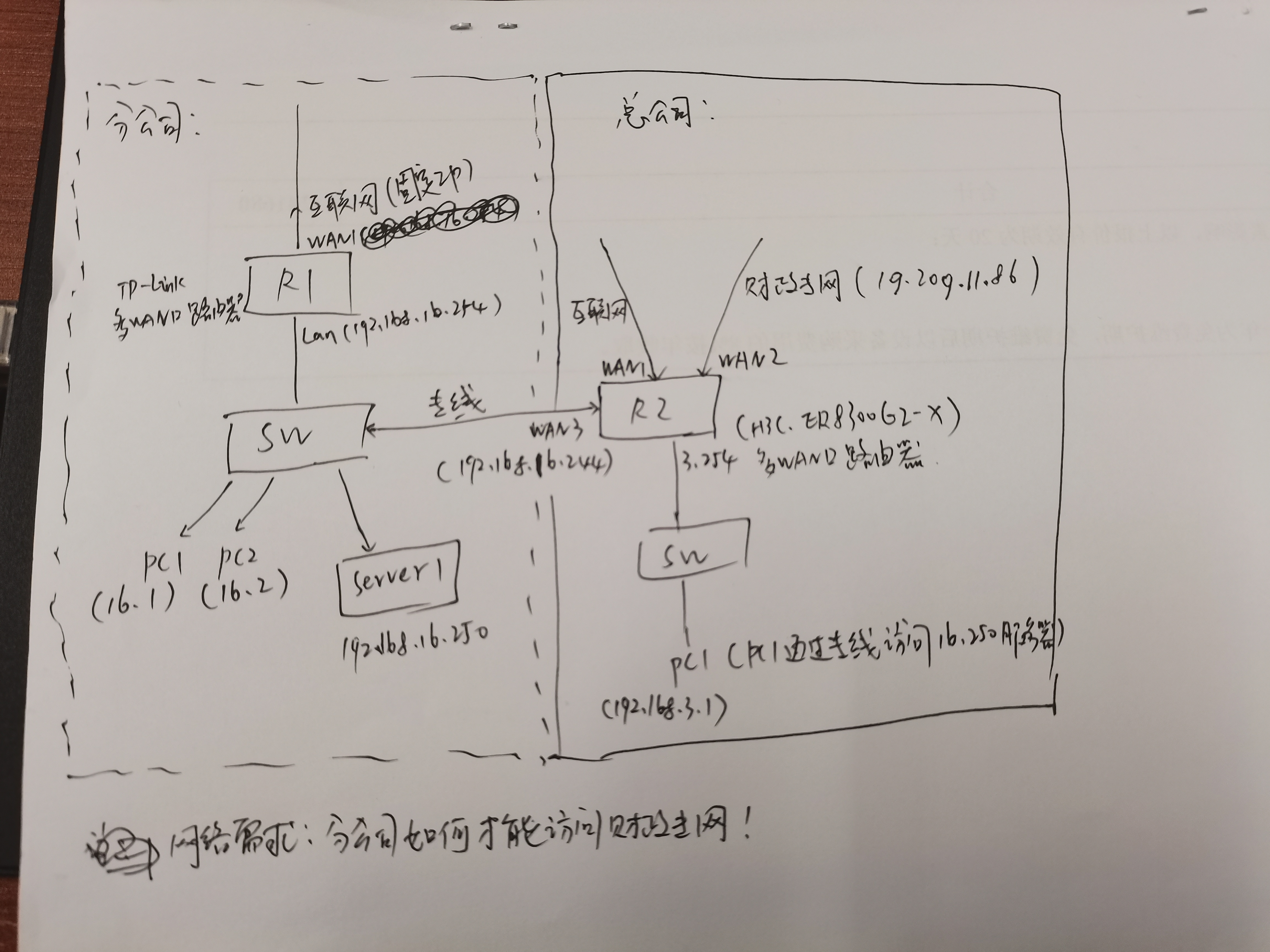 总公司办公PC1,可以通过专线访问192.168.16.250服务器