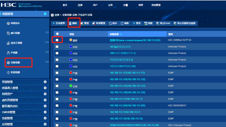 IMC添加的资源没有在网络资产里怎么删除