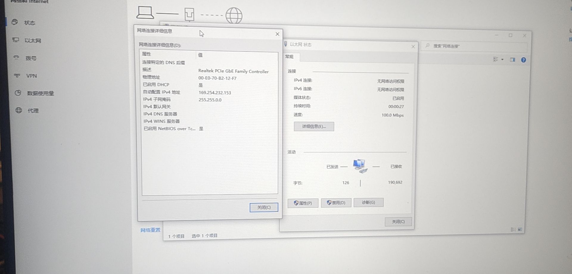 同一根网线下,原来的机器可以正常使用。换成新采购的机器就不能获取到IP地址,