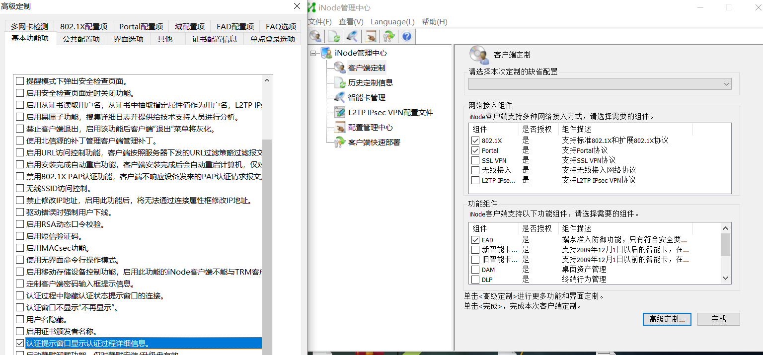 在iNode manager中重新制作iNode 制作时选择“高级定制”-“基本功能项”然后勾选“认证提示窗口显示认证过程详细信息”