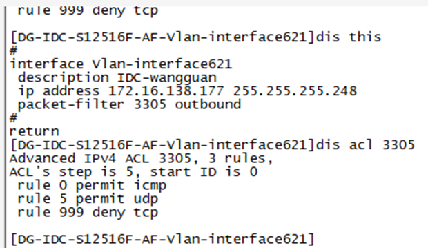 在交换机上配置包过滤,一开始下发失败 删除没用acl后出方向下发成功 但是没生效 改成入方向就可以成功了