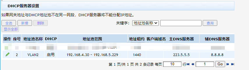 终端拿的还是接口管理--DHCP设置那里的地址池
