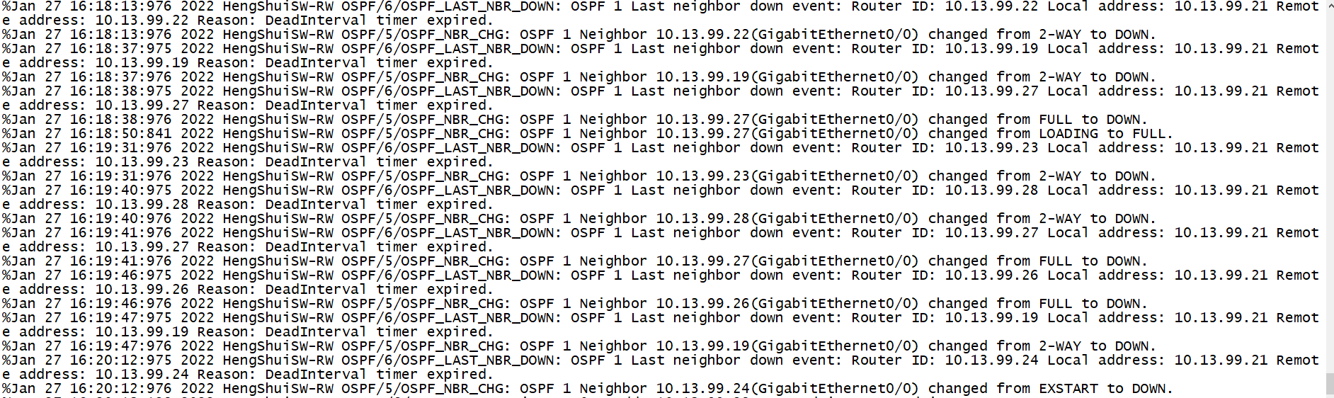 12台路由器连接交换机,使用ospf协议,其中一台出现频繁通断,接口ip正常没有断过