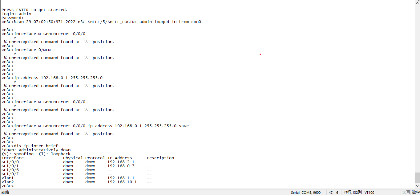 你要进系统视图下去敲 interface