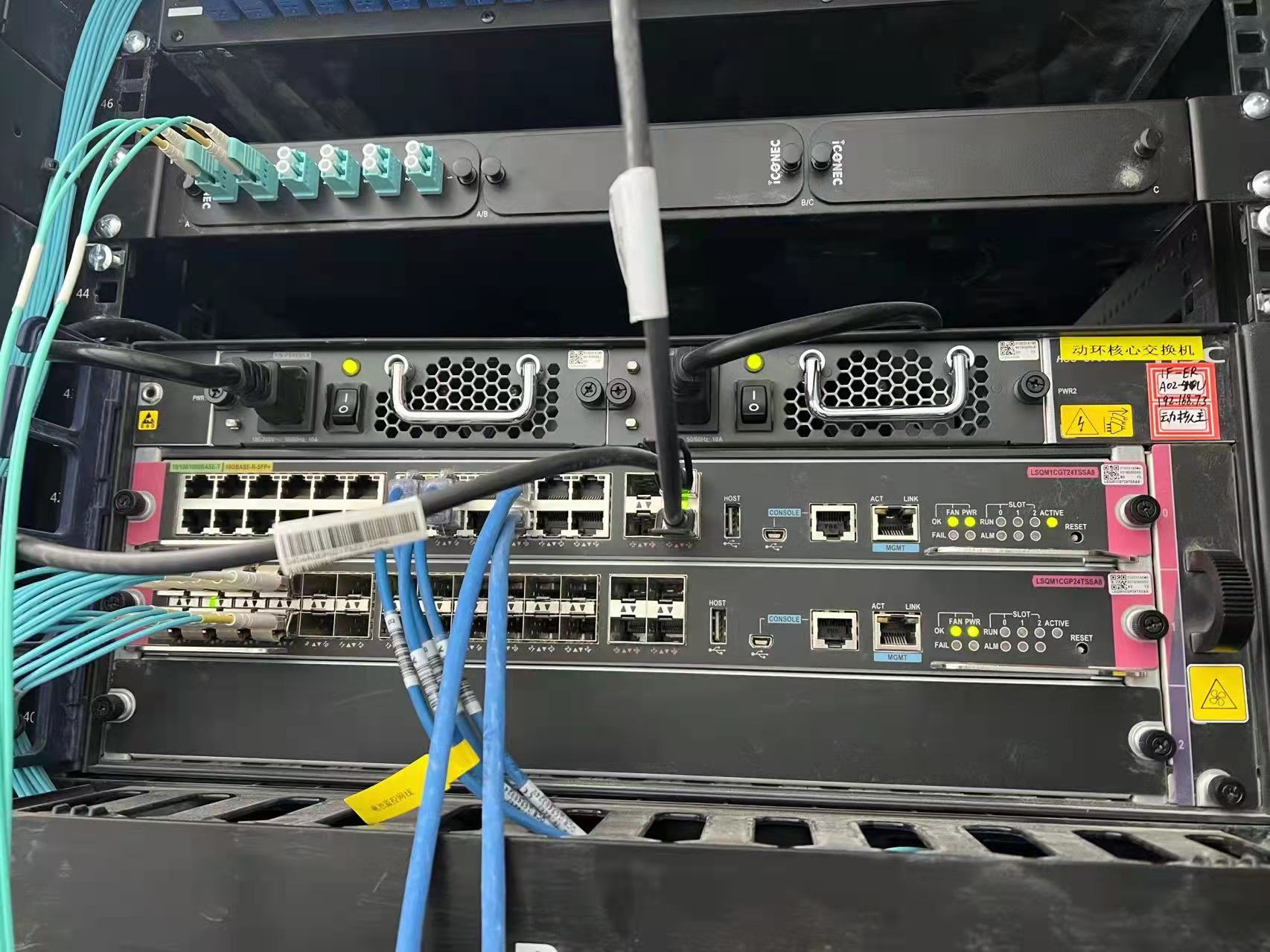 两台S7003E设备堆叠,其中一台突然宕机,板卡指示灯熄灭,重启后,又恢复正常。如图: