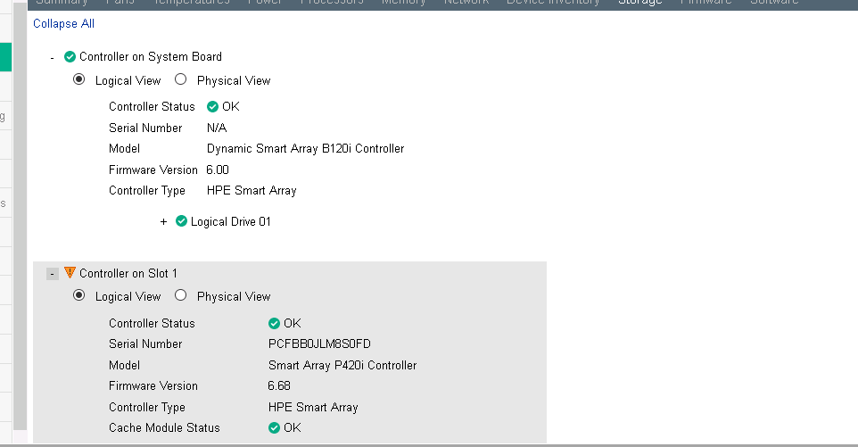 服务器硬盘状态正常,2块阵列卡状态也正常,但是第二块阵列卡下面的逻辑硬盘状态显示异常,有大佬知道怎么回事吗