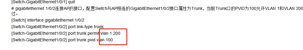 做本地转发,vlan100 是AP的地址,vlan200 是终端的网段,此图是在交换机上配置的接口,这里需要再增加port trunk permit vlan 100 吗。