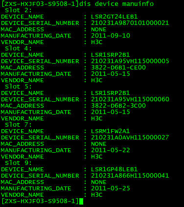 95E是型号较早的框式设备,目前命令只能看到板卡的SN码,机框的SN需要看机框上贴的或者查看订单里边的信息。