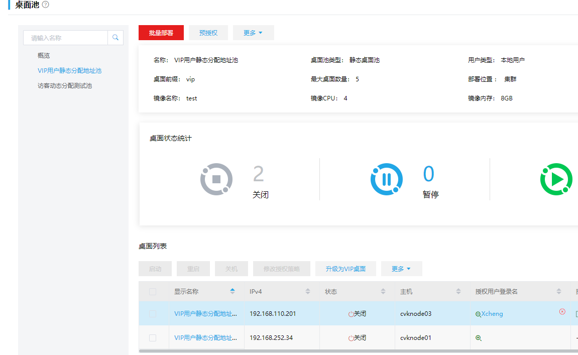 桌面是开启了绑定终端的模式吗?如果是的话,可以在对应的桌面列表,将虚机授权的终端给移除。需要注意的是,移除后,终端将无法连接至该虚机
