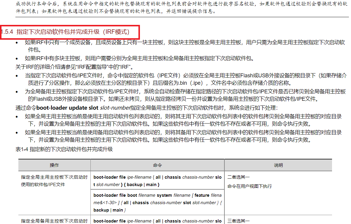 · 现要求对IRF启动软件包进行升级,使所有成员设备使用新的启动软件包运行。