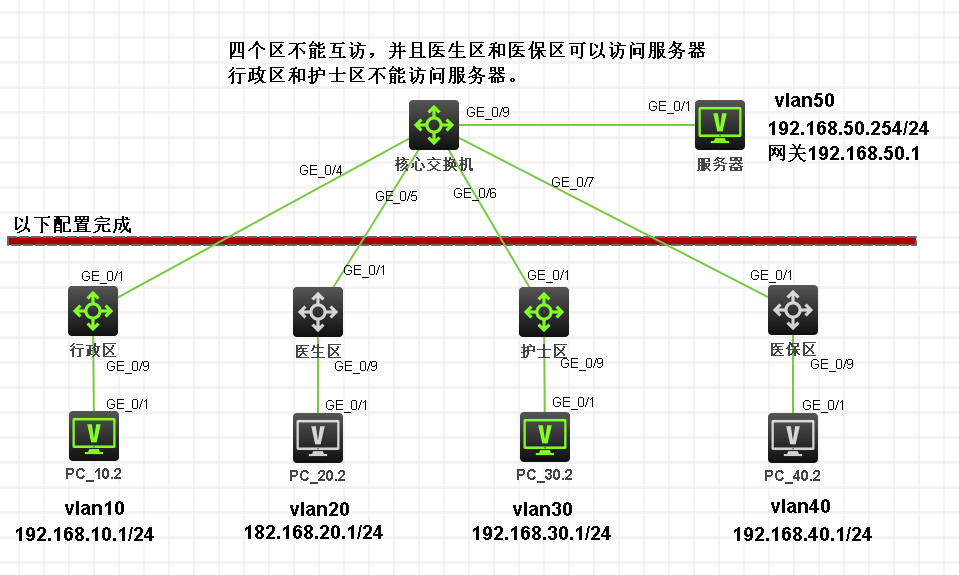 因为要求四个区不能互访,并且行政和护士不能访问服务器,
