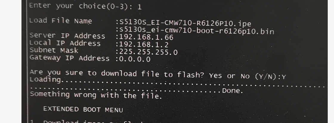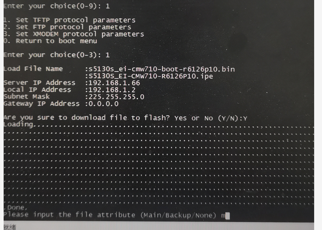 TFTP到故障交换机,发现s5130s_ei-cmw710-boot-r6126p10.bin上传不上去,