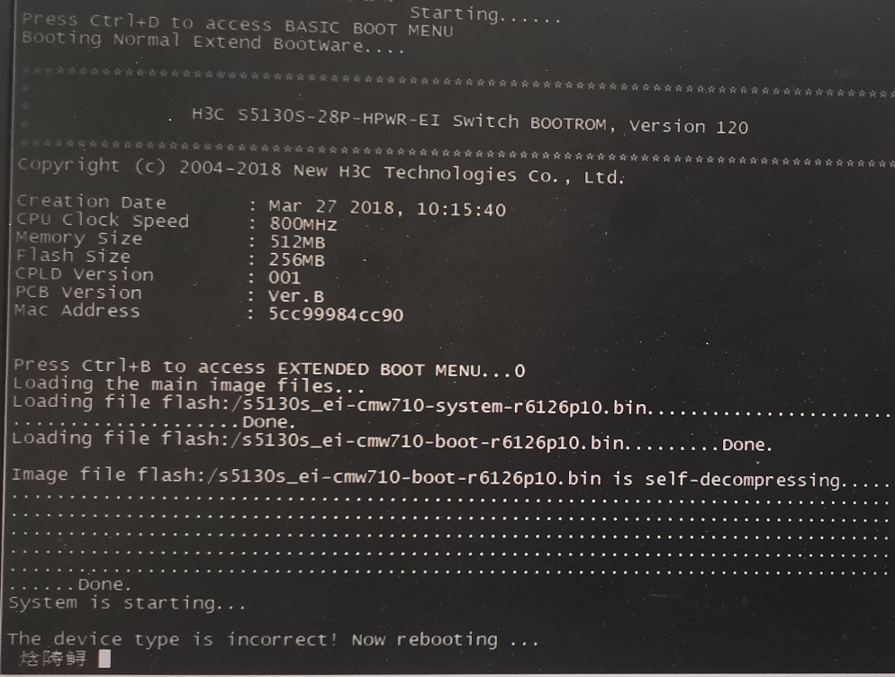 交换机不断重启,删除系统文件,从另一台正常使用的同型号交换机TFTP下载系统文件后