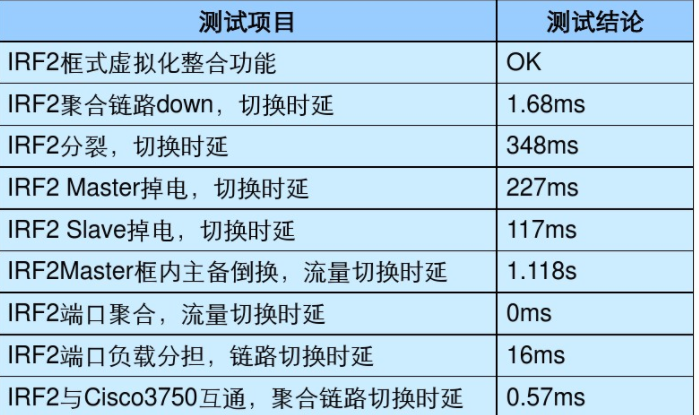 irf的主备状态切换的中断时间是多久?和重新加入irf的时间?