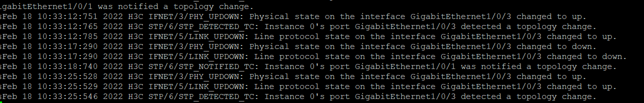 VRRP配置成功后1号交换机3口频繁UP/down