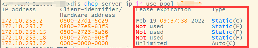 我要查清某个DHCP地址池有哪些IP分配了出去的,以下这个表看不太懂