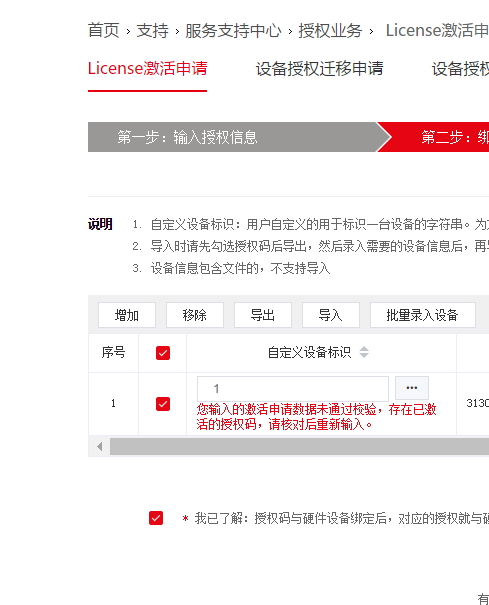 注册过的授权码可以通过变更授权来进行设备的更换绑定