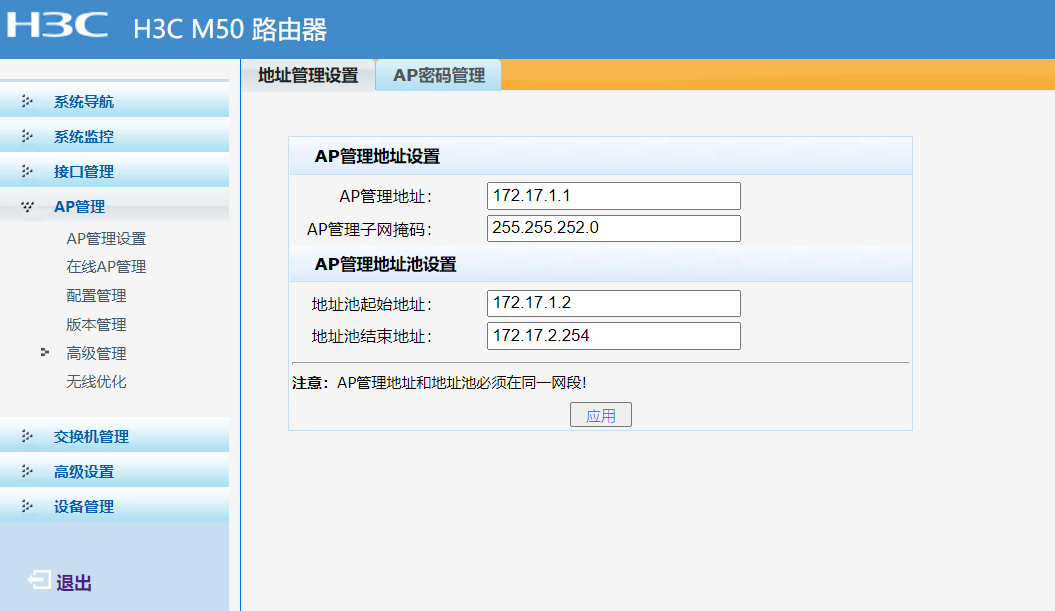 组网结构:核心-POE交换机-AP,AC型号为miniM50,旁挂核心。核心创建vlan11,且创建地址池,POE交换机当傻瓜用,给的vlan11,,按理来说,AP得到的地址应该是我核心给的172.16.11.0段的地址,但是在AC上面看到的AP的地址为172.17.1.0段的,这个好像是AC直接给AP的,在AC上有这么一个页面
