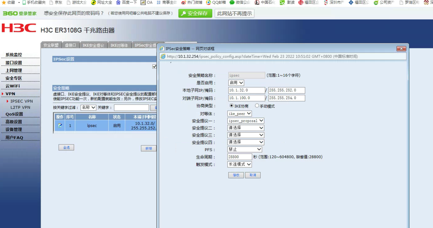 er3108g路由器一个小时拨一次ipsecvpn,但是我看触发模式也是长连,这是什么问题呢