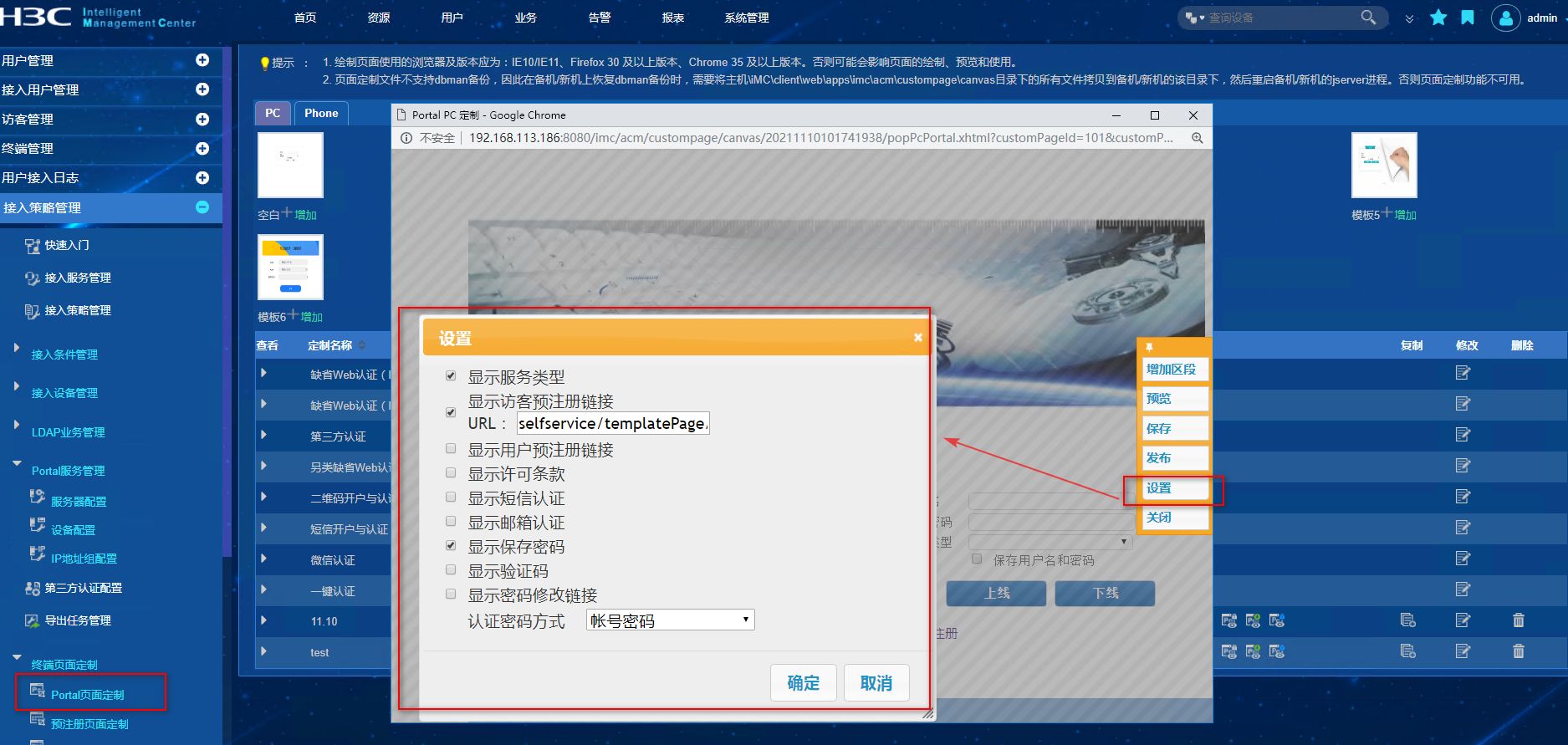 Portal认证页面左下角的常见问题解答,忘记密码,注册访客和修改密码按钮如何隐藏?