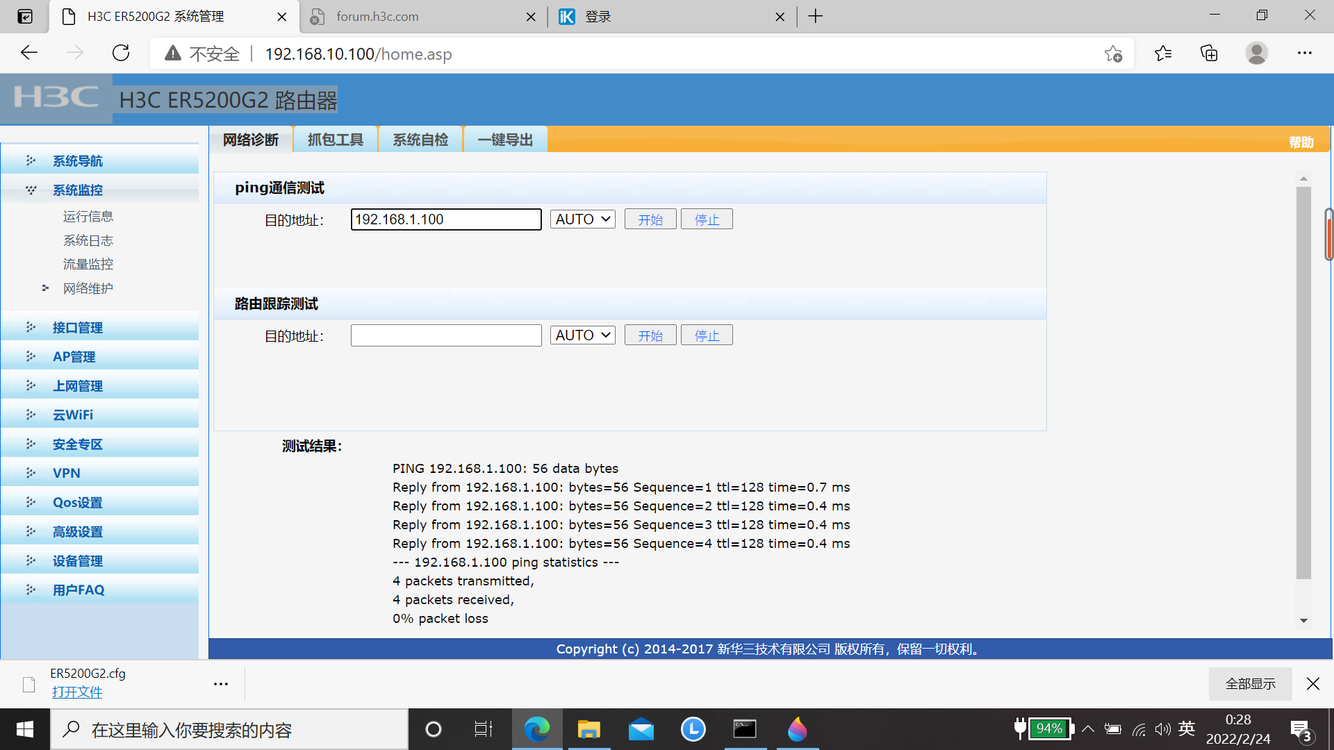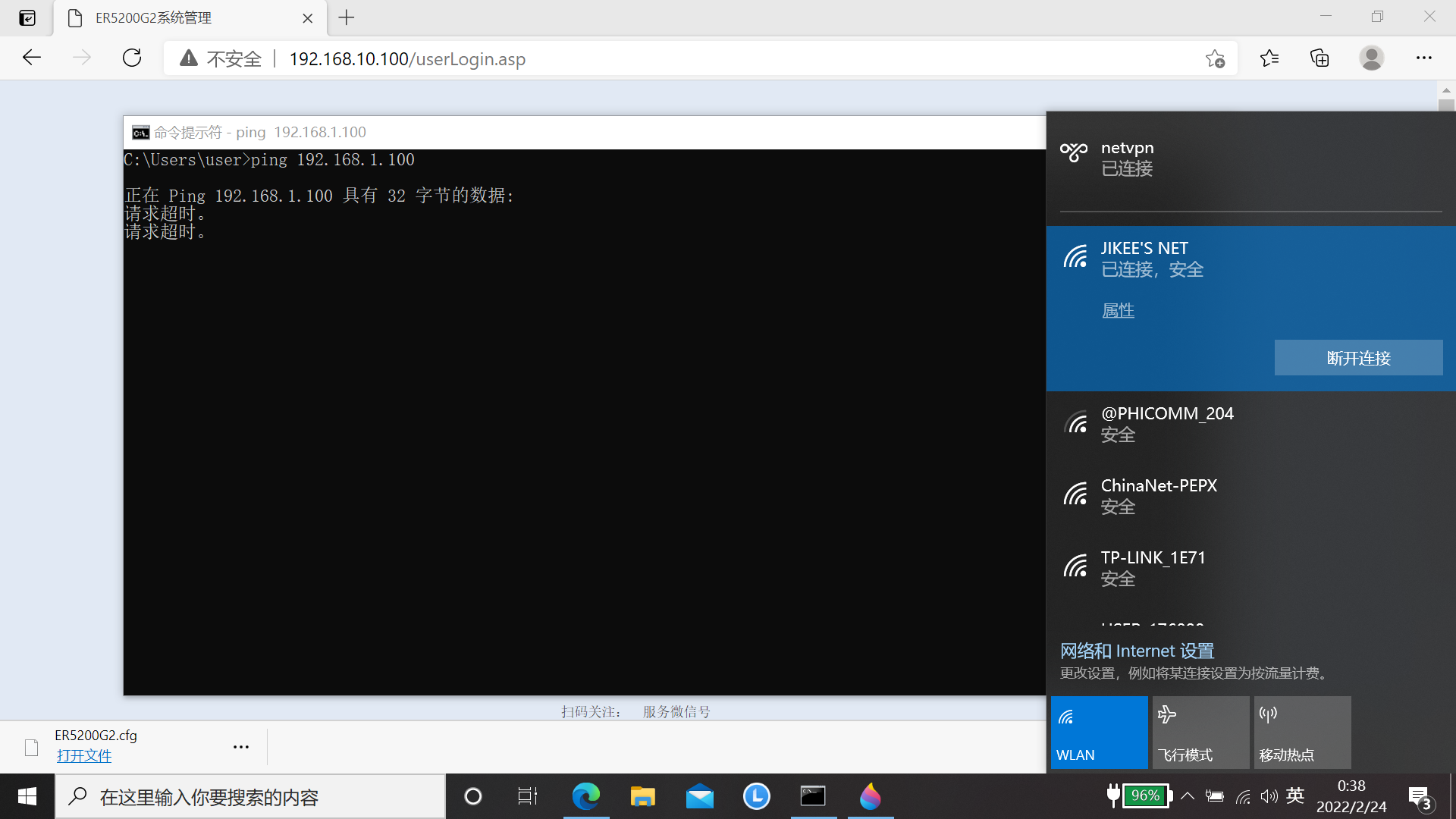 在路由器上PING内网IP是可以PING通的,但在客户端电脑上无法PING通