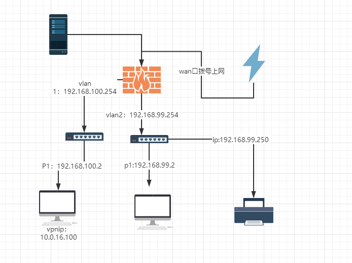 1、P1不运行vpn时,P1与P2、打印机是可以互通的;