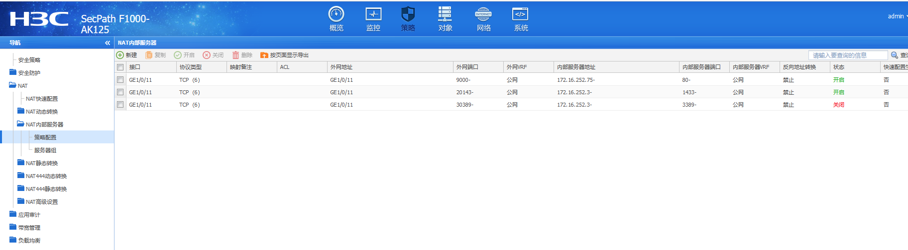 [Device-GigabitEthernet1/0/2] nat server protocol tcp global 202.38.1.1 80 inside 10.110.10.1 http