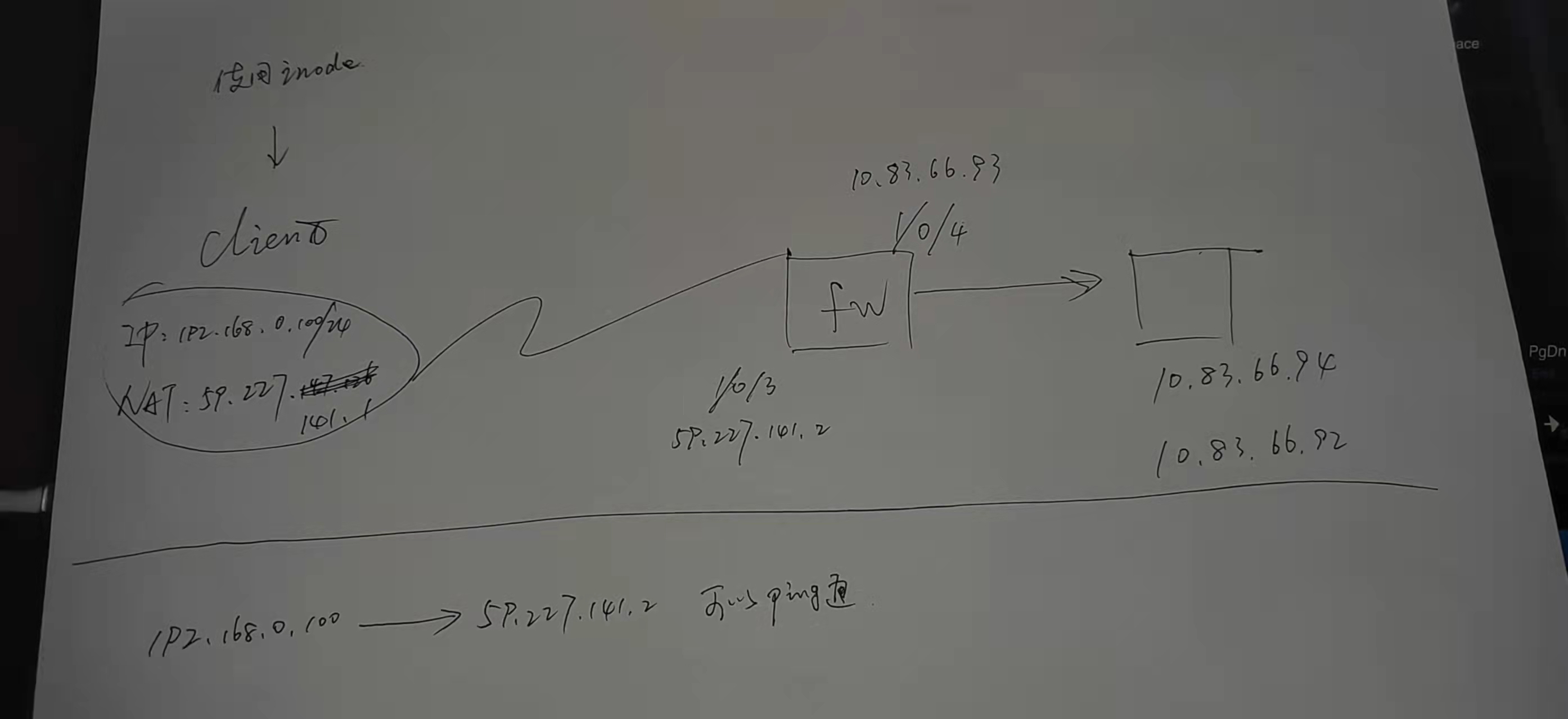 从pc到fw内侧的地址10.83.66.93可以平通,但到内网的其他(如10.83.66.90)不通