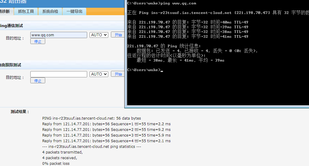ER5200G2路由测试Ping和电脑ping同一个网页回复IP不同