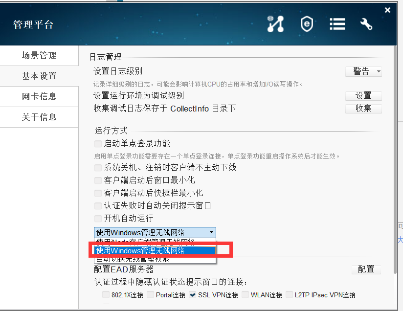 inode客户端无线连接设置一下,是不是使用inode连接无线了,如下图在基本设置里面无线管理改成windows无线管理