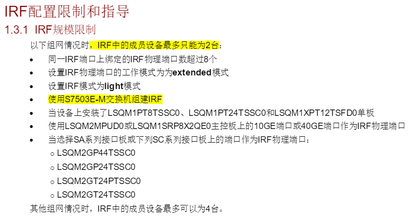 您好,以下是IRF使用的限制说明,请参考: