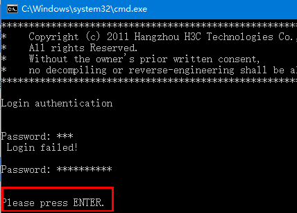 S5024P-EI telnet 登录进去 如何去掉提示 Please press Enter