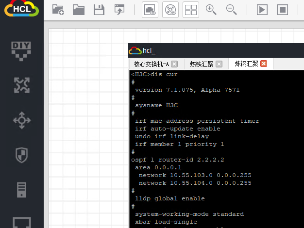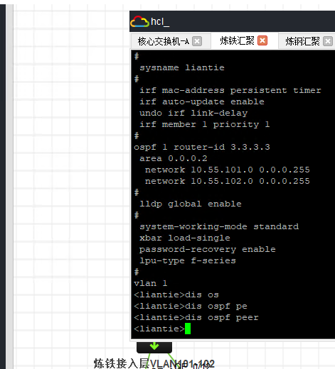 这么跟你讲吧,你汇聚是1域,你核心是0域,你汇聚怎么和你核心互通,OSPF是靠路由器划分区域的啊,你这完全通不了,而且这IRF也没做好